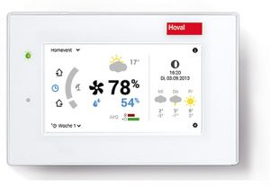 Besonders stark zeigen sich die Komfortlüftungen der neuen Generation in Kombination mit einem Hoval Heizsystem. Durch die zentrale Steuerung des Gesamtsystems über die Systemregelung TopTronic E hat der Kunde nur ein Bedienmodul für mehrere Hoval Komponenten. Beim Komfortlüftungsgerät ermöglicht eine ausgefeilte Sensorik eine den Kundenwünschen entsprechende erweiterte Regelung – vollautomatisch oder individuell. Optionale Sensoren kontrollieren die Luftqualität im Haus und/oder ausserhalb des Hauses: VOC (volatile organic compounds – das heisst flüchtige organische Verbindungen, wie zum Beispiel menschliche Ausdünstungen) werden gemessen und bei Bedarf wird die Luftmenge automatisch erhöht. Ist jedoch die Aussenluft geruchsintensiv, kann ein VOC-Sensor in der Zuluft die Luftmenge des HomeVents verringern: