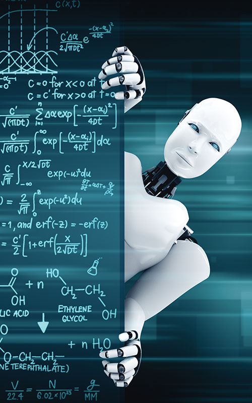 Home ETH und EPFL entwickeln offenes Sprachmodell MLP 3D render humanoid robot show up from educational blackboard in class room