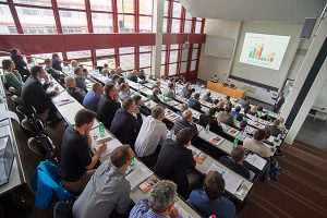 Im Mittelpunkt muss immer der Mensch stehen! Mit dieser Feststellung leitete Klaus Peter Sedlbauer, Technische Universität München und Fraunhofer Institut für Bauphysik, die Reihe der Referate ein. Aufgrund der globalen Trends, wie dem Bevölkerungswachstum, der Verstädterung usw., sowie disruptiven Entwicklungen sind deutlich erhöhte Ansprüche an das Bauwesen zu stellen. Wohl hat der innovative Wandel bereits Ende der 1970er-Jahre mit ersten Solarhäusern begonnen und hat sich in dieser Richtung kontinuierlich weiterentwickelt, Klaus Peter Sedlbauer stellte jedoch fest: «Wir sind heute mit einem andern Energiemix unterwegs und müssen lernen, in allen Aktivitätsbereichen mit neuen Technologien umzugehen.»