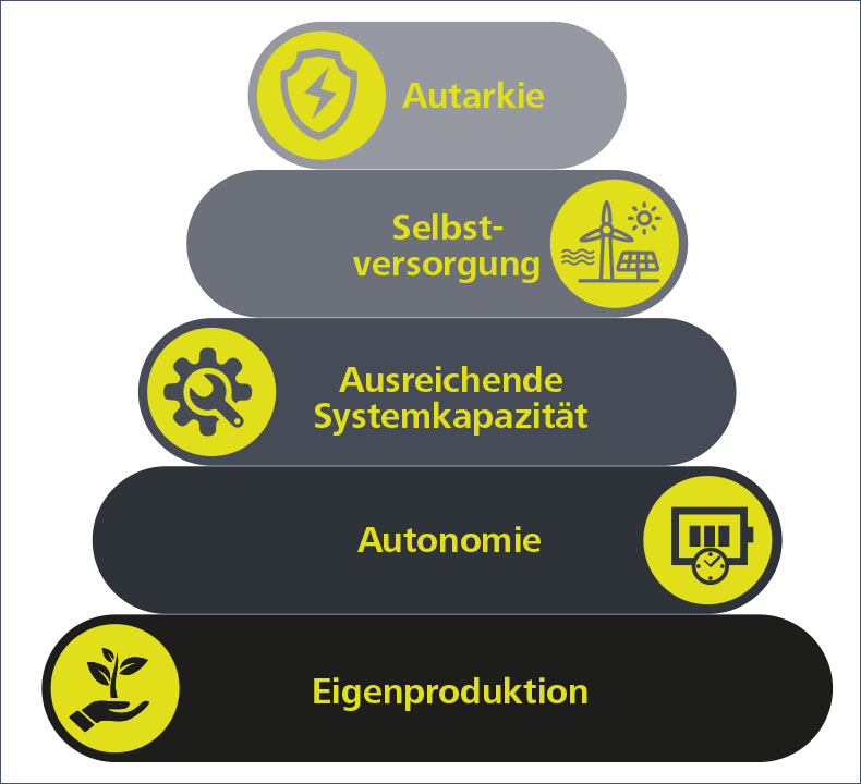 Das von den Forschenden vorgeschlagene Modell gliedert die Energieversorgungssicherheit in fünf Stufen, die zwar aufeinander aufbauen, aber ganzheitlich betrachtet werden. Grafik: Empa